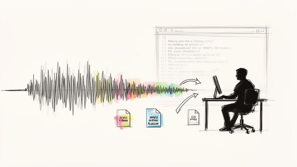 The real magic happens when you chain these techniques into an automated pipeline. You can write a simple script that takes any raw audio file and runs it through a series of FFmpeg commands, perfectly prepping it for transcription every single time.