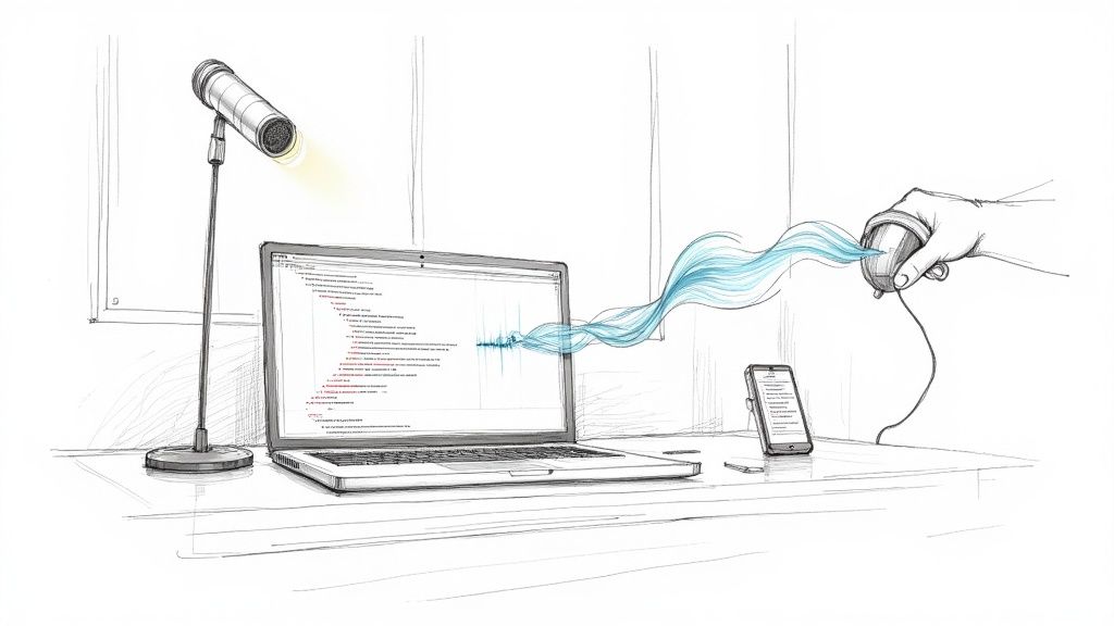 This isn't just about saving time. It's about unlocking the information trapped in your audio. The demand for this is exploding—the U.S. transcription market is expected to rocket past $32 billion by 2025 and could even top $50 billion by 2035. That growth is fueled by the sheer volume of audio and video content being created every single day. If you want to dive deeper, you can explore more market insights on the growth of transcription services.