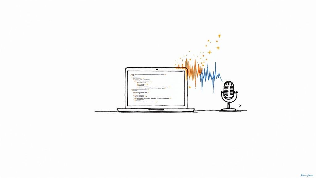 The demand for this kind of instant, accurate text is absolutely booming. The global transcription market was already valued at $21 billion in 2022 and is on track to blow past $35 billion by 2032. This isn't just a niche tool anymore; it's a reflection of the broader AI revolution. Top-tier automated tools are now hitting accuracy rates of 90% or higher, making them essential for all kinds of modern applications. If you're curious, you can discover more insights about these AI transcription trends and see where the industry is headed.