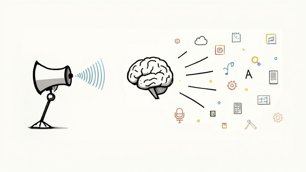 The real magic of speech-to-text isn't in the algorithms themselves, but in how they solve tangible problems out in the world. When we move past the technical jargon, we see these models creating genuine value by converting spoken words into structured, usable data. The applications are surprisingly diverse and are quietly reshaping how businesses work.